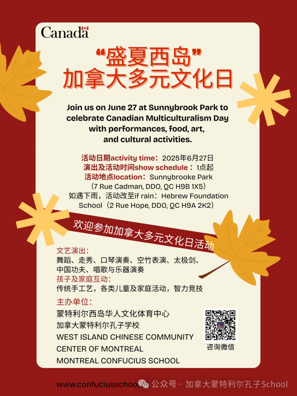 【孔子学校-社区新闻】邀您6月27日共赴“盛夏西岛”多元文化日联欢活动