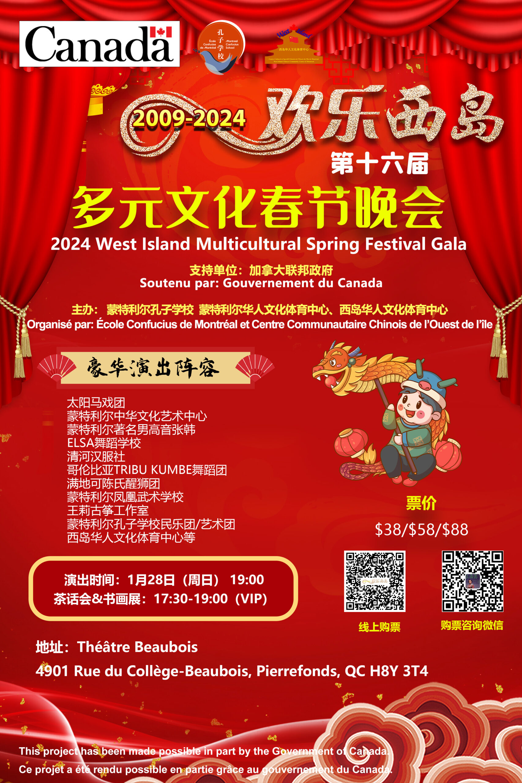 时日如飞,光阴荏苒,我们即将送走收获颇丰的金兔,迎来崭新的龙年。作为每年辞旧迎新的传统活动,蒙特利尔孔子学校与西岛华人服务中心将共同主办第十六届《欢乐西岛》多元文化春节晚会。这次晚会以“龙腾盛世 万象更新”为主题,用丰富多彩的艺术表现形式,展示人们积极向上的风采,表达对美好生活的向往与憧憬。本次晚会的节目异常精彩,创新层出,我们自豪地邀请所有人共同见证这个极具魅力的耀眼文化盛宴。